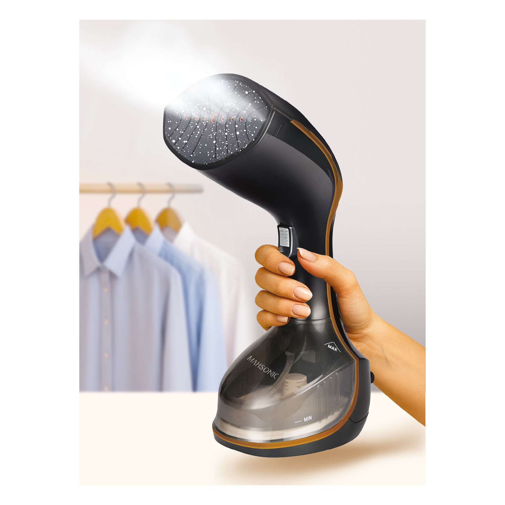 بخارگر ماهسونیک با تولید 30 گرم بخار در دقیقه، چروکهای سطحی و عمیق لباس را بهسرعت از بین میبرد و برای تازهسازی لباسها بدون نیاز به میز اتو بسیار کاربردی است.